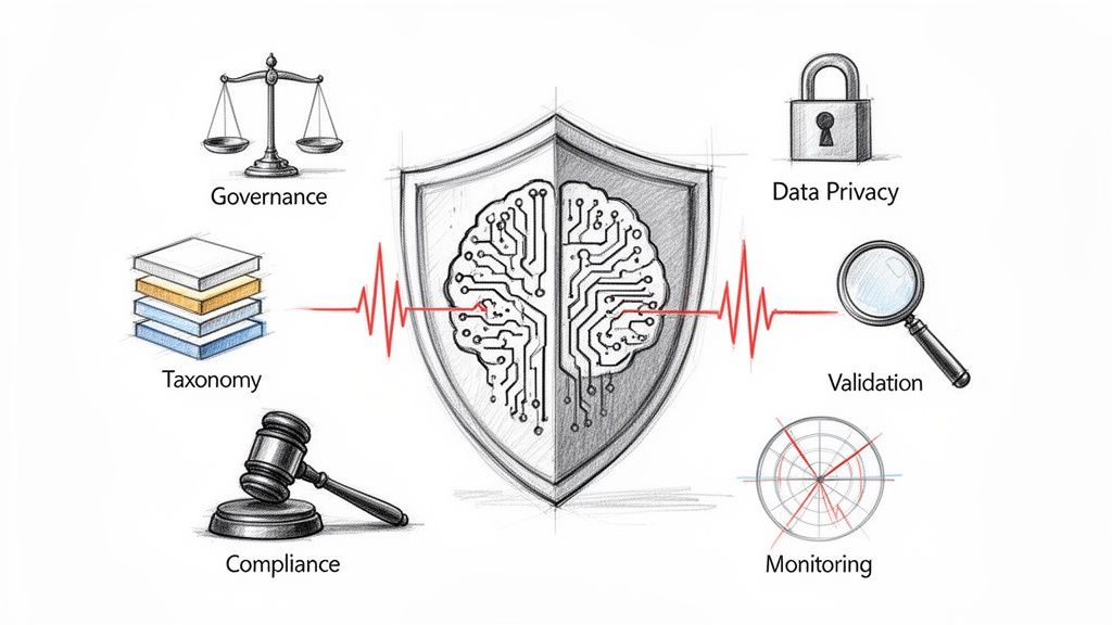 The performance of any AI system comes down to two things: the quality of its data and how thoroughly it's been tested. When we talk about a real-world AI risk management framework for healthcare, the technical controls you build around your data and models are the foundation. These are the practical guardrails that keep patient data safe, prevent biased algorithms from making unfair recommendations, and ultimately, make sure a clinician can actually trust what the AI is telling them.